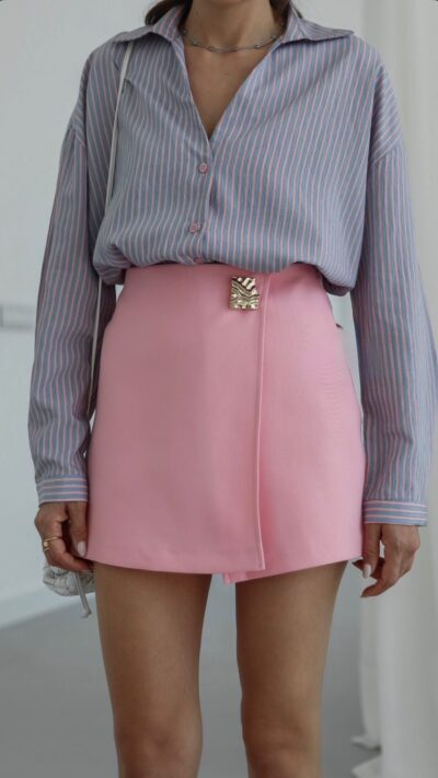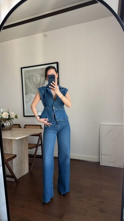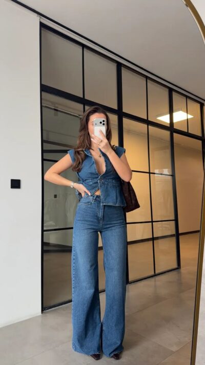 Light Blue Denim Shirt And Wide Leg Pants Set